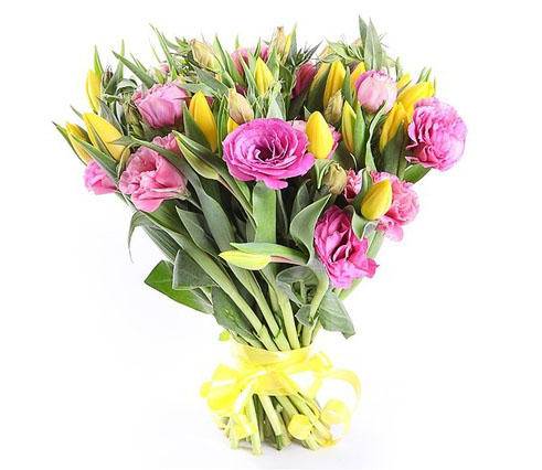 Букет, состоящий из лизиантусов и тюльпанов, красиво играет яркими цветами, придавая композиции непередаваемо свежий вид. Можно подарить «Розовый щербет» друзьям, поднимая настроение и показывая свое теплое отношение. А можно и девушке, демонстрируя свои разнообразные, как и сам букет, но положительные чувства и эмоции.