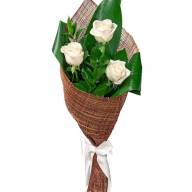 Хотите сделать жест внимания? Букет станет прекрасным помощником в этой задаче. Он состоит из трех белых роз на ножке 50 сантиметров, цветы издавна олицетворяют нежность, невинность и светлые чувства. Цветочная композиция прекрасно подойдет для подарка на свидании и без лишних слов выразит эмоции, таящиеся внутри. Нежный запах ненавязчиво окутает и погрузит в романтичное настроение. Каждая женщина мечтает получить стильный букет и воплотив ее желание, вы точно об этом не пожалеете.